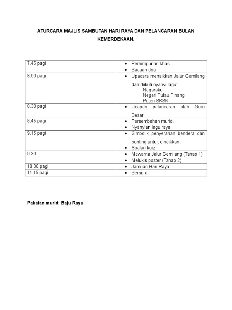 Aturcara Majlis Sambutan Hari Raya Dan Pelancaran Bulan Kemerdekaan