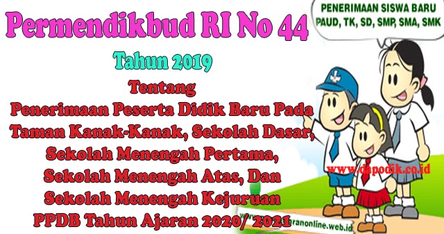 Download Permendikbud Ri No 44 Tahun 2019 Tentang Penerimaan Peserta Didik Baru Pada Taman Kanak Kanak Sekolah Dasar Sekolah Menengah Pertama Sekolah Menengah Atas Dan Sekolah Menengah Kejuruan Ppdb Tahun Ajaran 2020 2021