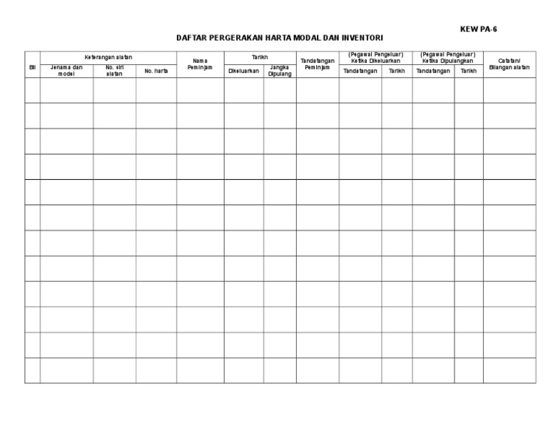 Kew Pa 6 Daftar Pergerakan Harta Modal Dan Inventori