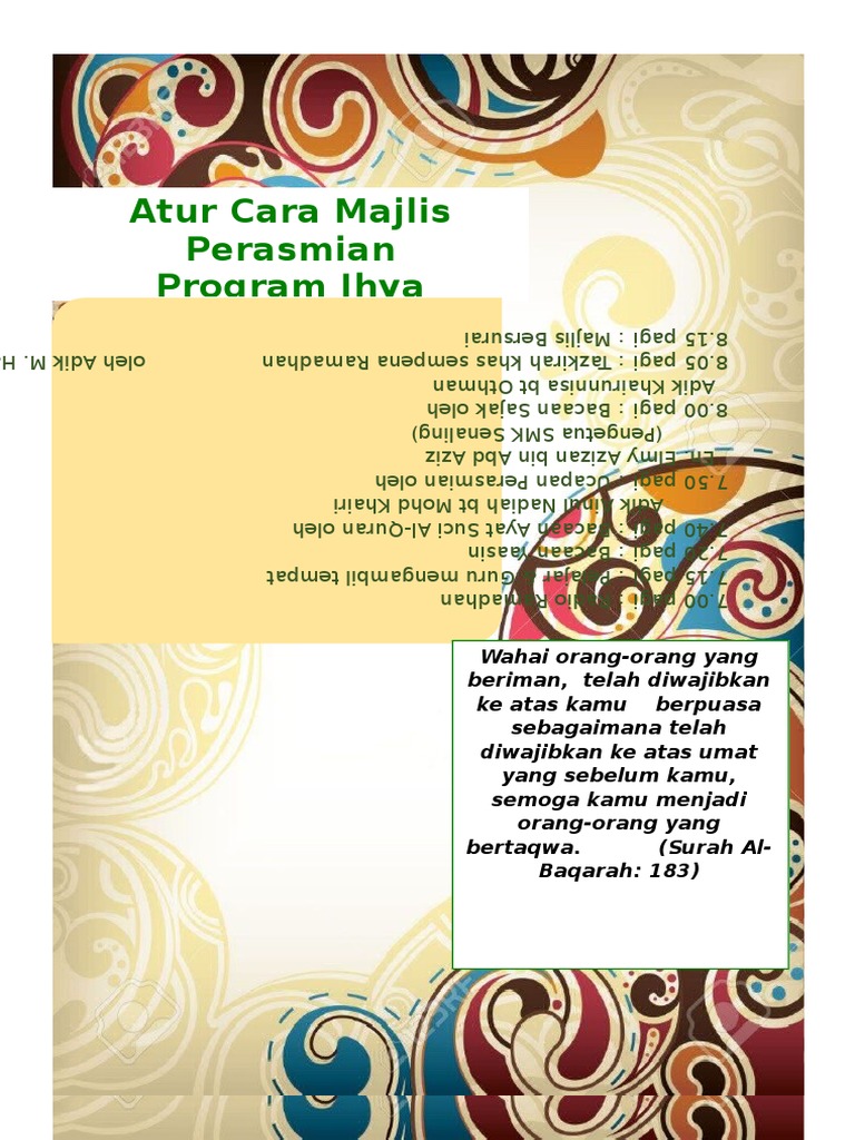 Buku Aturcara Pelancaran Program Ihya Ramadhan Sk Paka By Wahida778 Flipsnack
