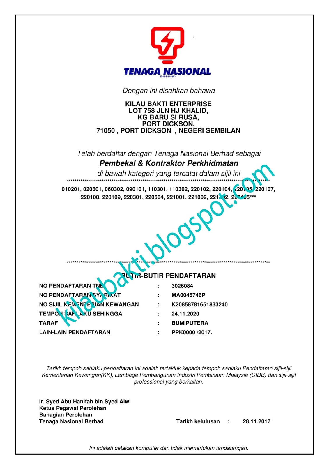 Welcome To Kilau Bakti Tnb Vendor Certificate