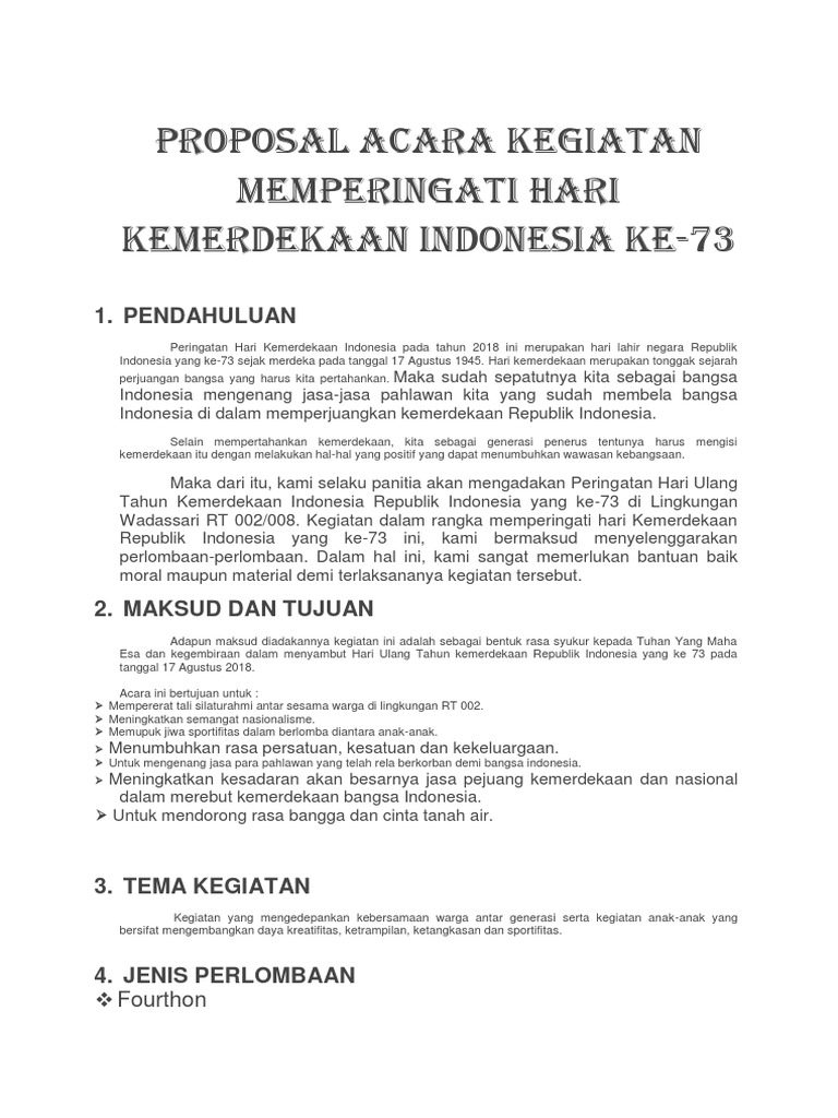 Proposal Acara Kegiatan Memperingati Hari Kemerdekaan Indonesia Ke 73